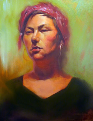That of learning how to paint again...This is my latest homework for Portrait painting class in which I succeeded in killing the rich, loose color I achieved when I began the piece (managed to get a better photo, though).